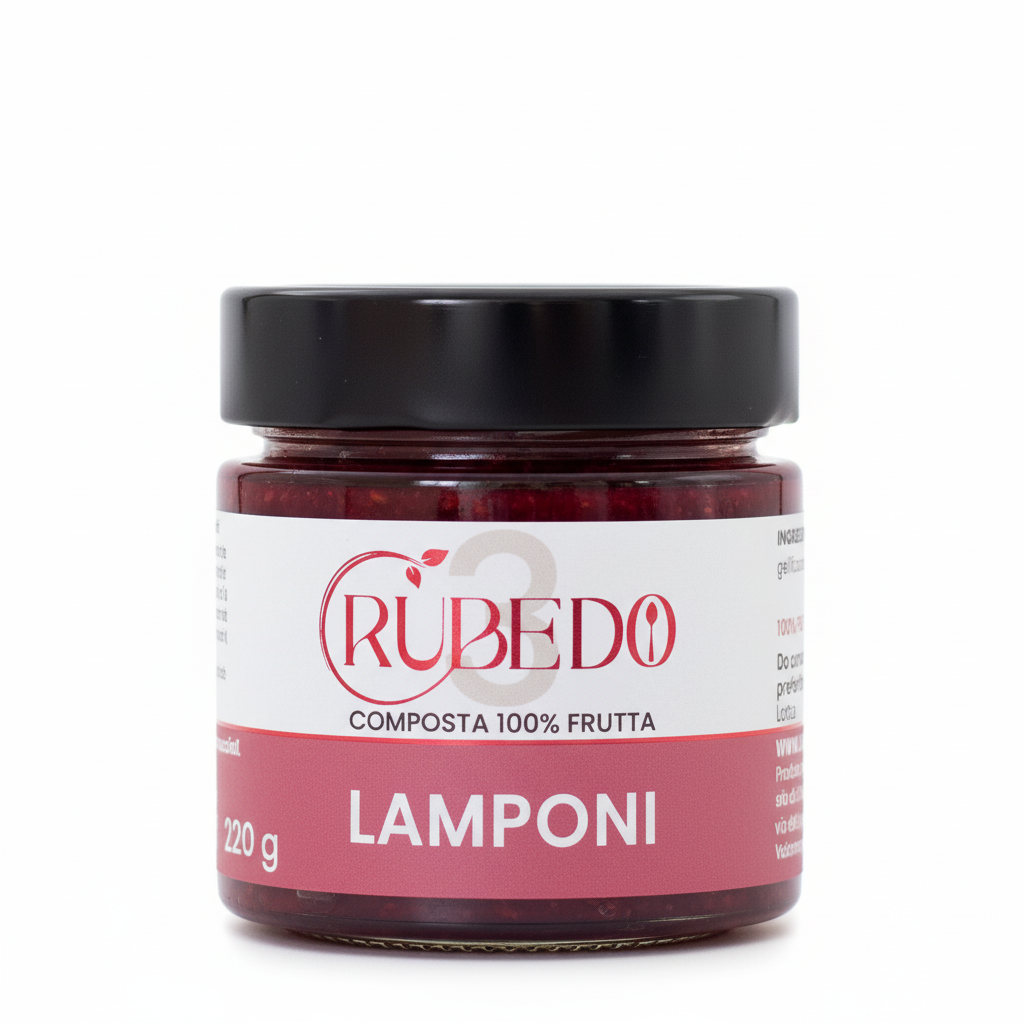 I savoiardi, anziché essere inzuppati nel caffè, si impregnano delicatamente della composta di lamponi Rubedo leggermente sciolta, che dona un sapore intenso e una colorazione vivace a ogni strato. L’aggiunta opzionale di un tocco di liquore ai lamponi esalta ulteriormente l’aroma fruttato.